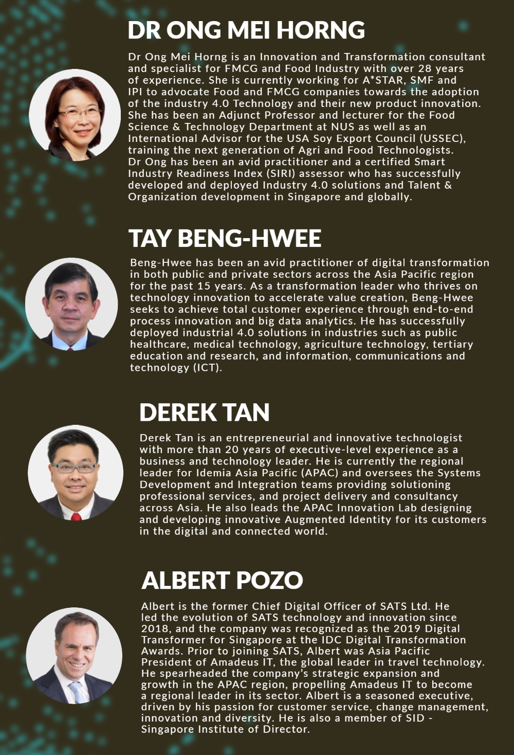 There will be 3 breakout sessions focusing on addressing the digital transformation challenges faced by enterprises in 3 different sectors: the food industry, healthcare industry and logistic/supply chain.