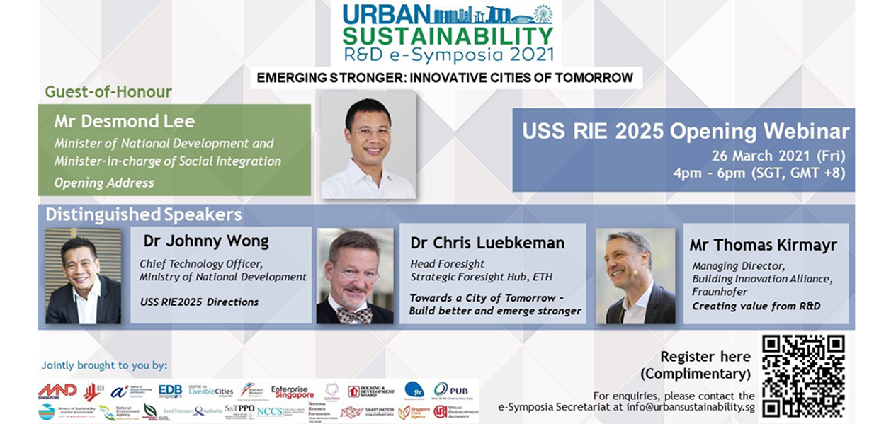 Since 2011, the biennale Urban Sustainability R&D Congress has brought our research community, agencies and industry partners together to explore opportunities and encourage collaboration in USS research and tech translation. This year, the R&D Congress is going digital and will be rebranded as the Urban Sustainability R&D e-Symposia! The e-Symposia comprises a year-long series of webinars in Research and I&E Focus Areas.