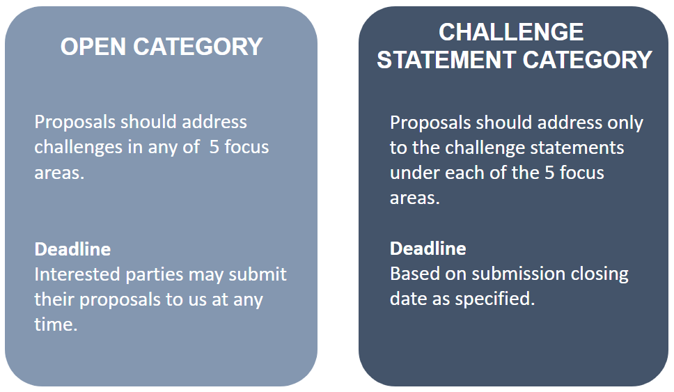 You can submit your proposal(s) under one of the two categories: