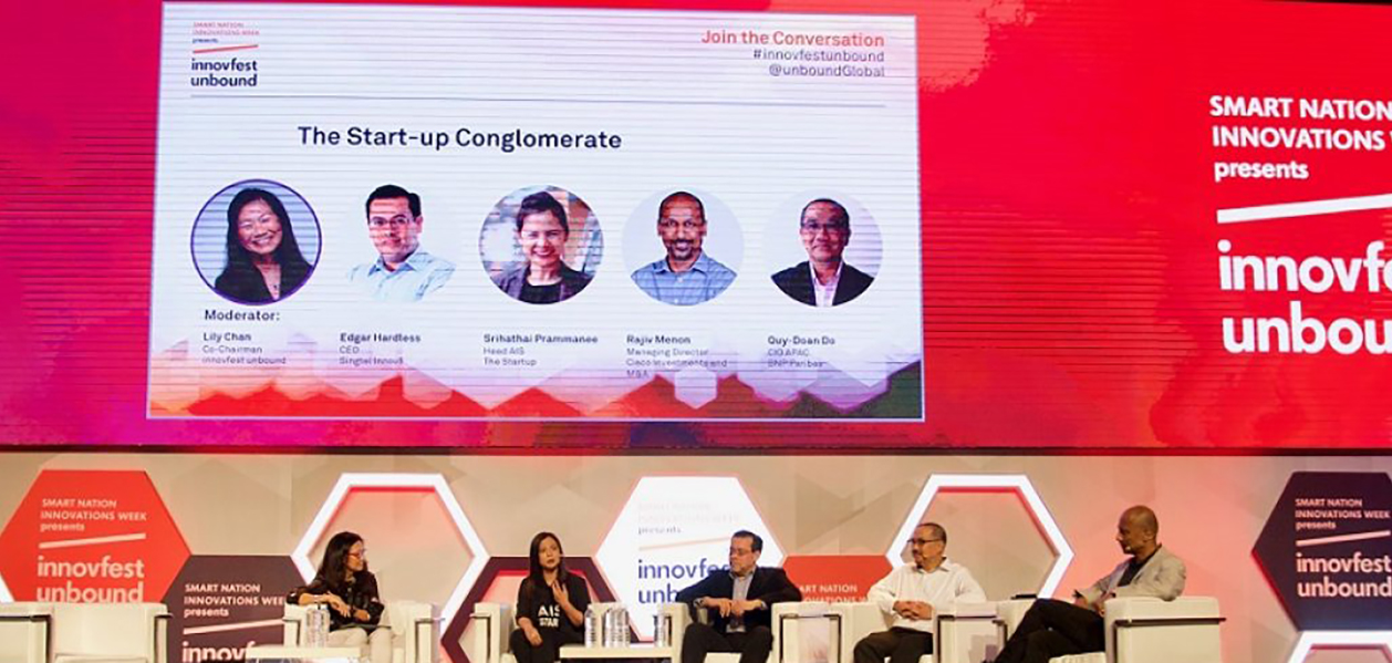 Joining him on the panel were Quy-Doan Do, Chief Information Officer APAC of BNP Paribas; Rajiv Menon, Managing Director of Cisco Investments and M&A; and Srihathai Prammanee, Head of AIS The StartUp. Dr Lily Chan, Co-Chairman of innovfest unbound, moderated the session.