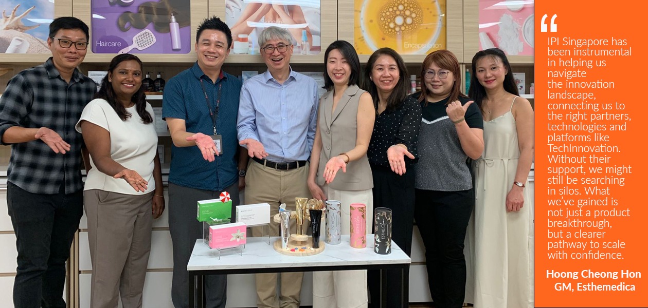 Through TechInnovation, IPI Singapore connected Esthemedica with Singapore Polytechnic (SP)’s Consumer Chemicals Technology Centre (SP-CCTC) and facilitated the partnership throughout each development phase.